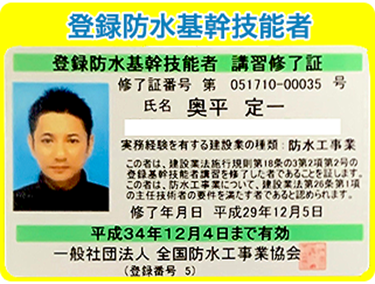 - 登録防水基幹技能者