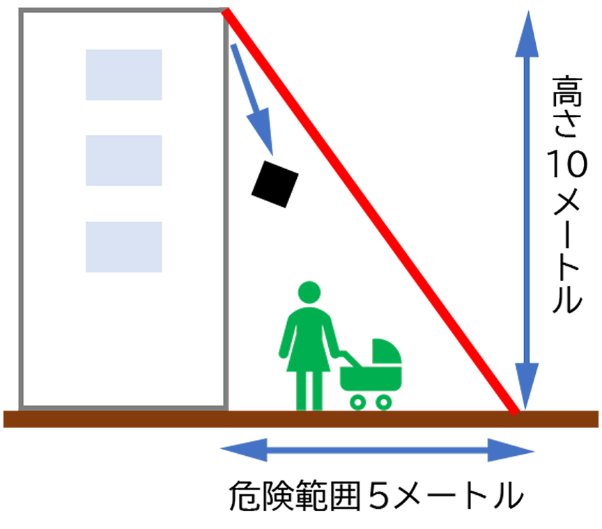 建物から水平距離5メートルが危険範囲です。(高さの約2分の1)